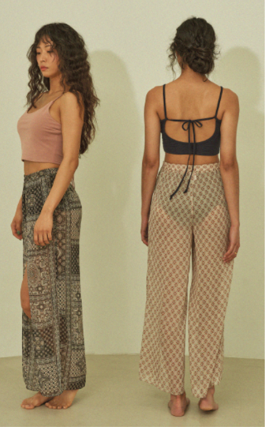 스트링으로 조절 가능한 백라인으로 몸에 맞게 입을 수 있으며,