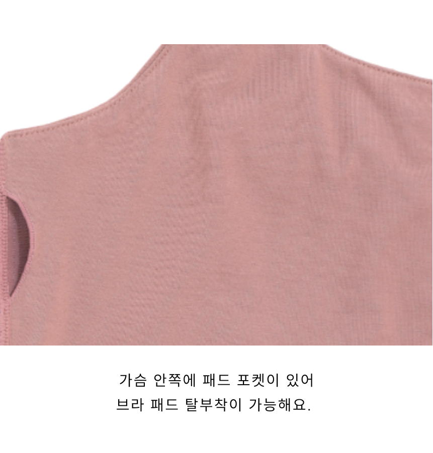 가슴 안쪽에 패드 포켓이 있어 브라 패드 탈부착이 가능해요.