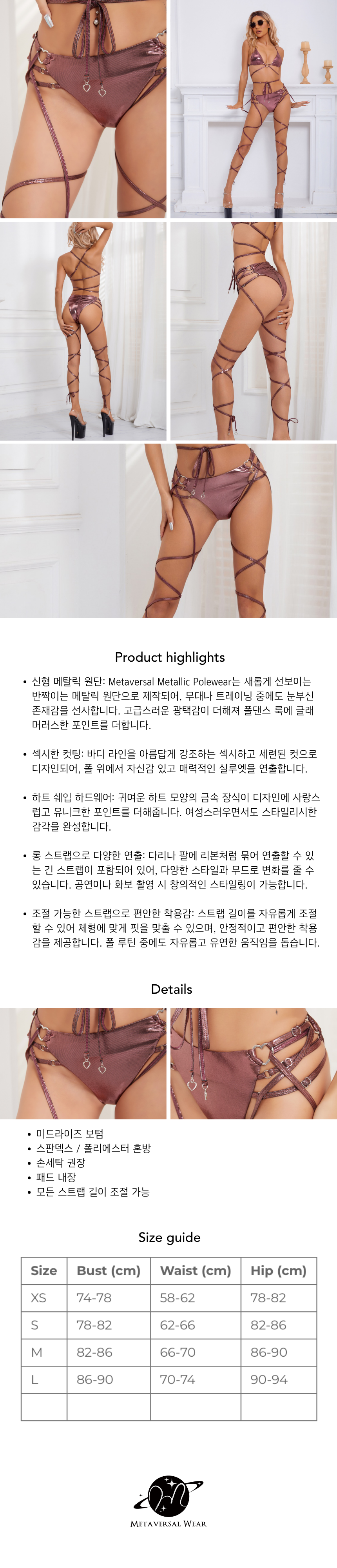 Metallic Heart Pink Bottom with Straps